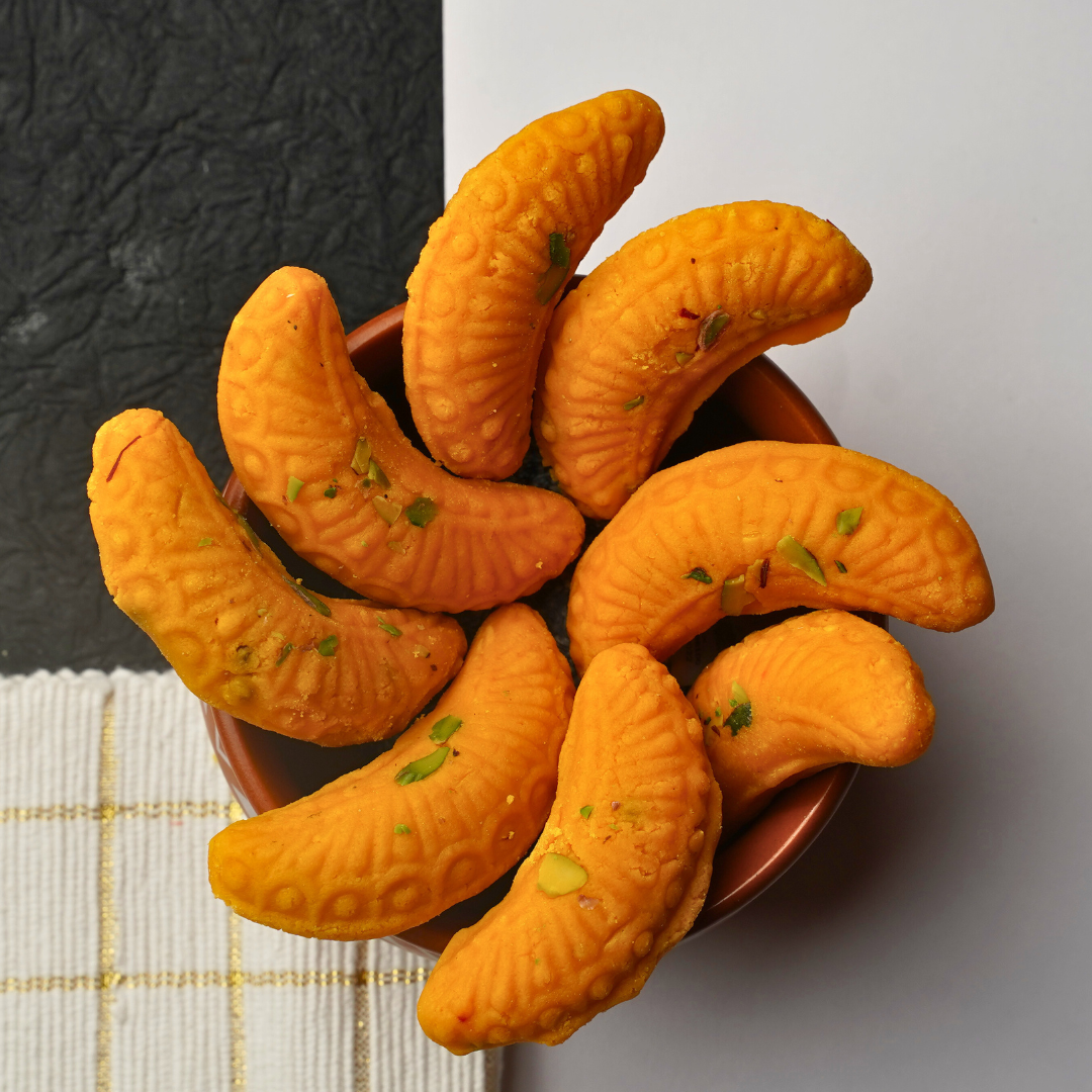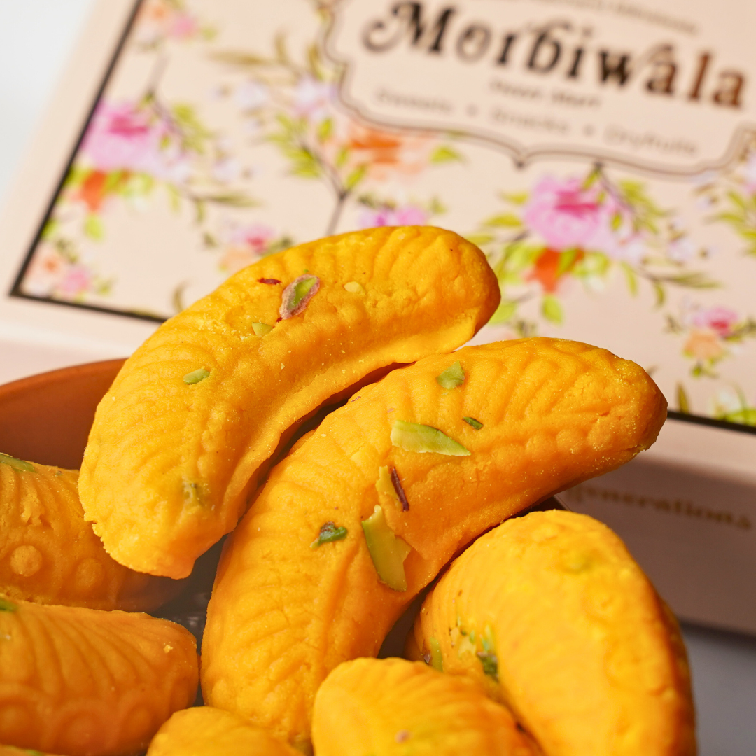 GHUGRA PEDA ARE MADE WITH KESAR & MAWA. ITS UNIQUE TASTE & SHAPE IS WORTH TO ORDER FOR.