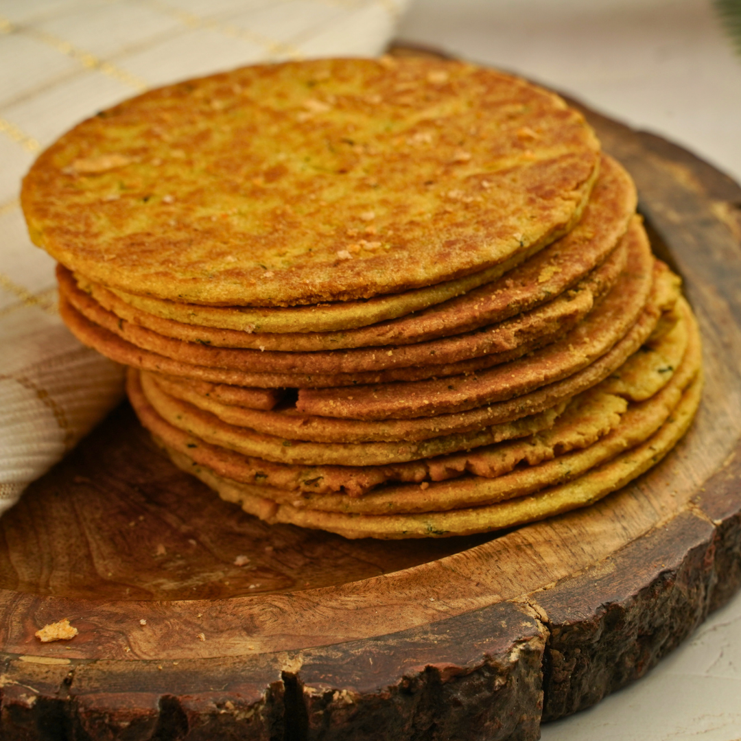 Meethi Bhakri is a delicious wheat-based flatbread that is a staple of Indian cuisine. It is traditionally handmade, using natural ingredients and no preservatives, for a delightful sweet taste and a soft, chewy texture. Enjoy the traditional taste of this classic flatbread today!