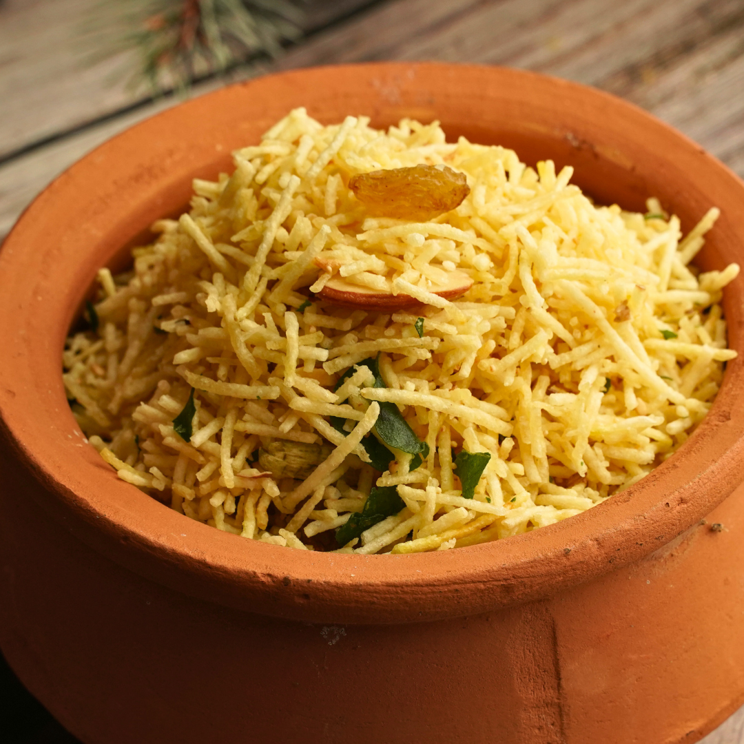 Potato Chivda is an all-time favourite snack made from flat potatoes, peanuts and masala spices. This crunchy and flavourful snack is perfect for when you’re looking for a tasty yet light snack. Enjoy the delicious blend of potato, peanuts and spices in every bite.