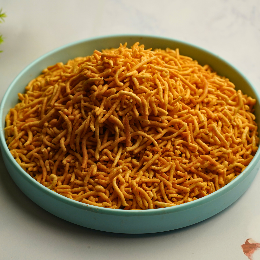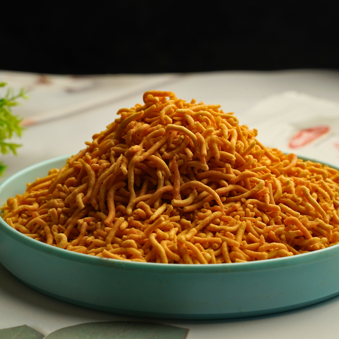 Indulge in the authentic flavors of Rajwadi Sev, a classic Indian snack made with lentil flour. Enjoy the crunchy texture of this savory snack, full of traditional spices and herbs to bring a unique taste to your palate. Its natural ingredients and simple preparation make Rajwadi Sev a healthier snack option for any occasion.